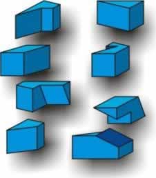Piesele sunt obtinute prin sectionarea unui cub, detasarea unei prisme si alipirea lor in diferite pozitii.
